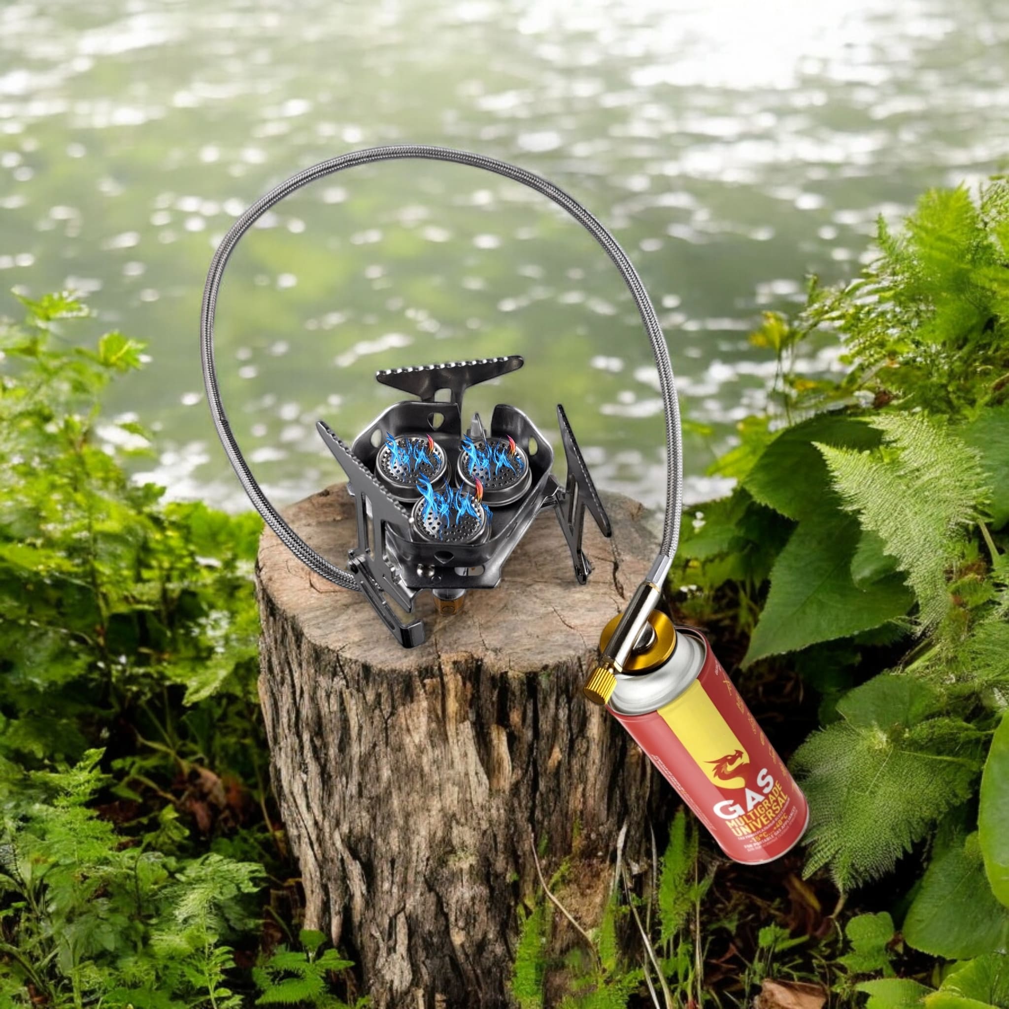 Встроенная система пьезоподжига позволяет мгновенно зажечь портативную горелку одним нажатием кнопки.