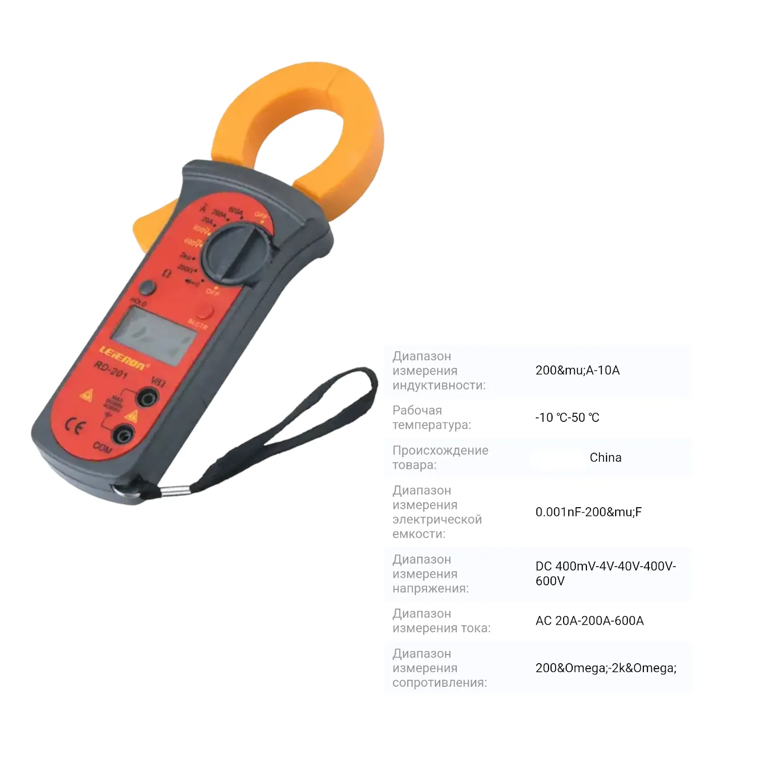 Токоизмерительные цифровые клещи с ЖК дисплеем предназначены для измерения тока, напряжения, сопротивления, параметров диодов и транзисторов. В комплект входит пара тестовых контактов красный и черный.